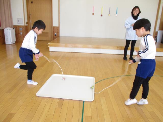 クリスマスプレゼントでもらったこま。遊び始めた頃は紐を巻き付けることも難しかったけれど、諦めずに何度も挑戦して、回せるようになりました。みんなでこま回し大会をやったり、寒い日には氷の上で回してみたりと、3学期中、夢中になって遊びました。