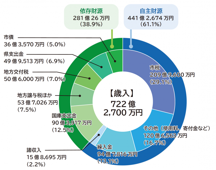 - 地方交付税…市の財政状況に応じて国から交付されるお金