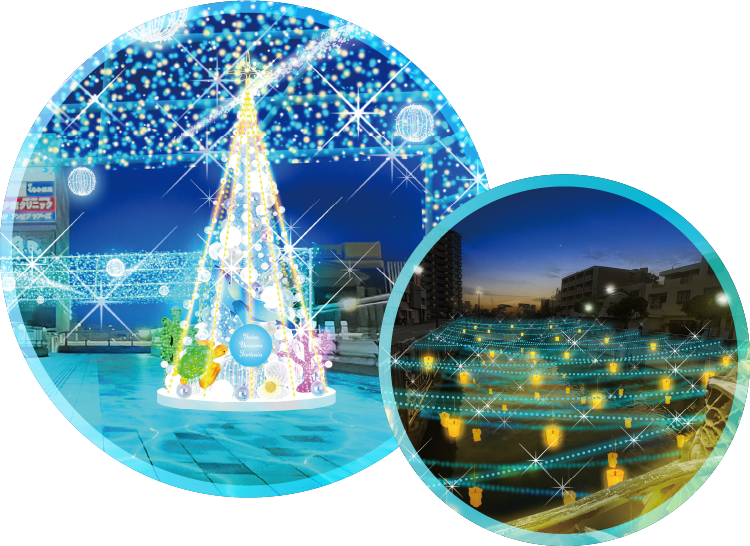 夜の街に神秘的な海中空間と星降る宙(そら)の景⾊を融合させます。