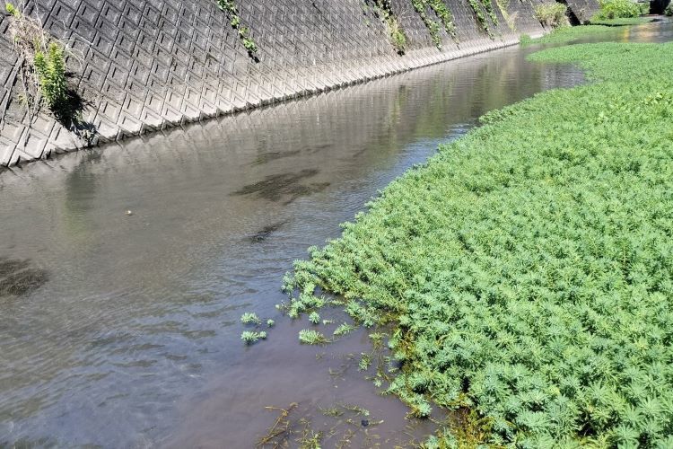 近年、焼津市内の小河川や水田でオオフサモが確認されています。繁殖力が非常に強く、生態系や農林水産業への影響が懸念されるため、「特定外来生物」に指定されています。